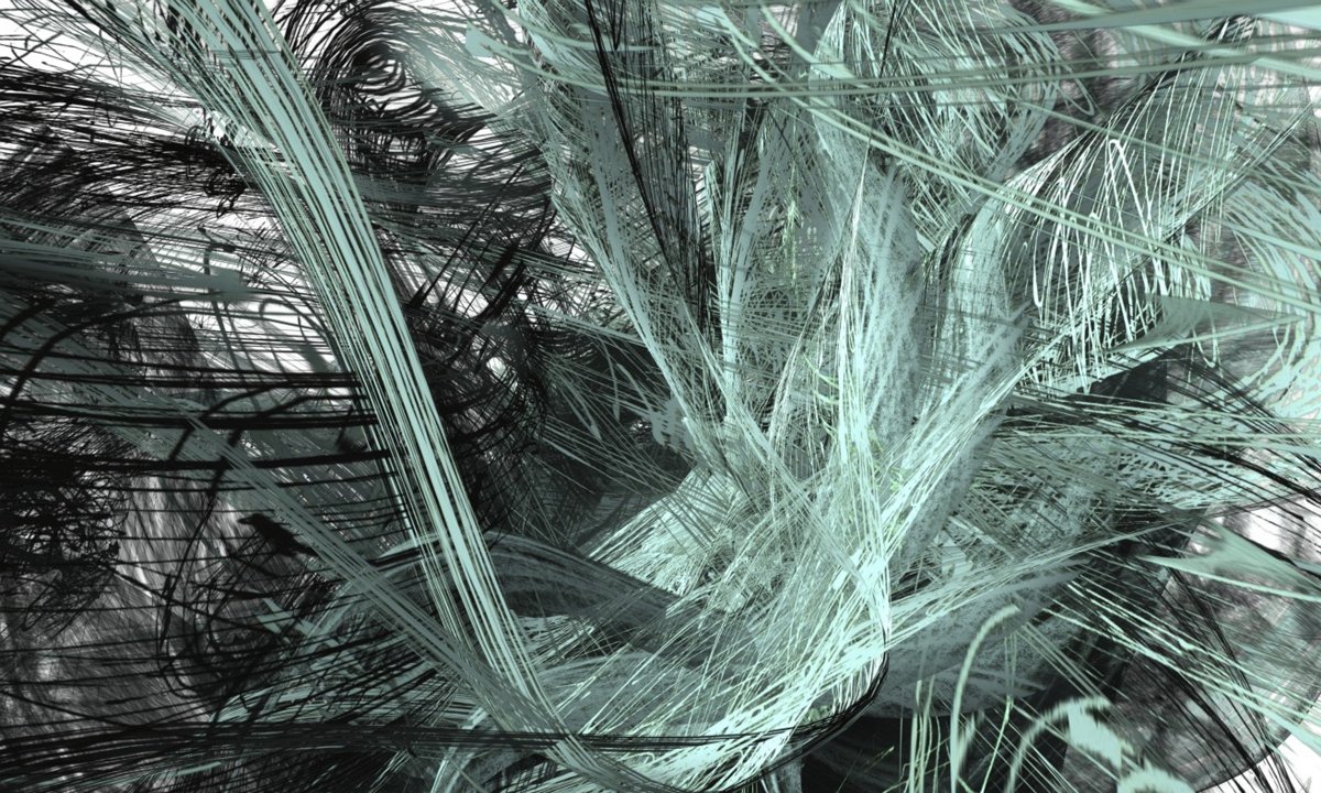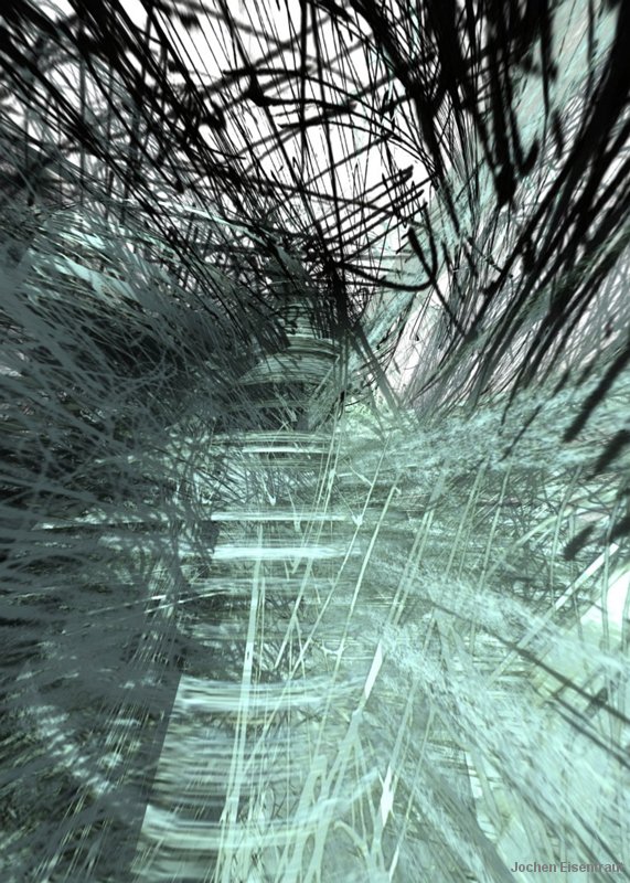 Latentes Raumgefüge (Passage II) Gewebe im Exzess Dynamische Formation im Randgewebe Analoge Schwingungen Wandler in exzessiven Welten Sich emporschwingendes Atrium Passage aus flüchtigem Raumgewebe Spiralraum, schwebend Undurchdringliches Liniengeflecht Fragiles Geflecht als Wegscheide Strömungen, sich umschließend Tanz eines dionysischen RaumesLatente Architekturen