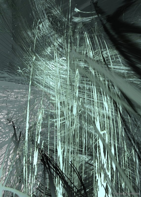 Latentes Raumgefüge (Passage II) Gewebe im Exzess Dynamische Formation im Randgewebe Analoge Schwingungen Wandler in exzessiven Welten Sich emporschwingendes Atrium Passage aus flüchtigem Raumgewebe Spiralraum, schwebend Undurchdringliches Liniengeflecht Fragiles Geflecht als Wegscheide Strömungen, sich umschließend Tanz eines dionysischen RaumesLatente Architekturen
